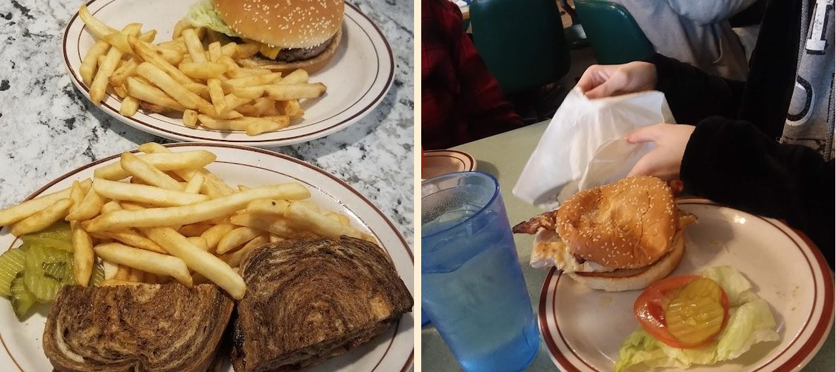 Popular dishes include BBQ ribs, chicken strips, and the Chef's combination salad. Breakfast items like pancakes and omelettes also draw a crowd, making it a great spot for any meal.
